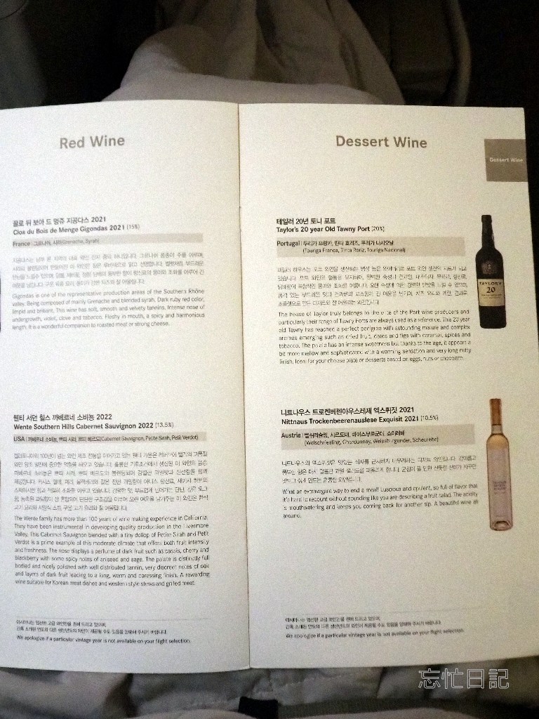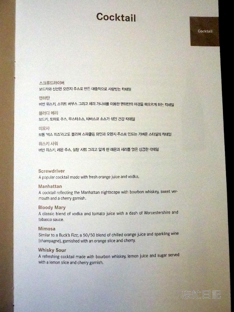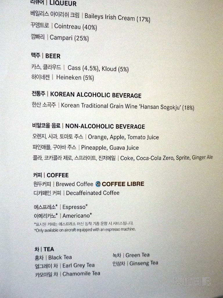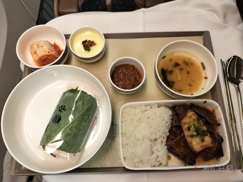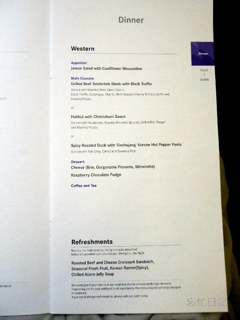 ソウルを飛び立ち水平飛行に移ると、ほどなく機内食のメニューが配られました。