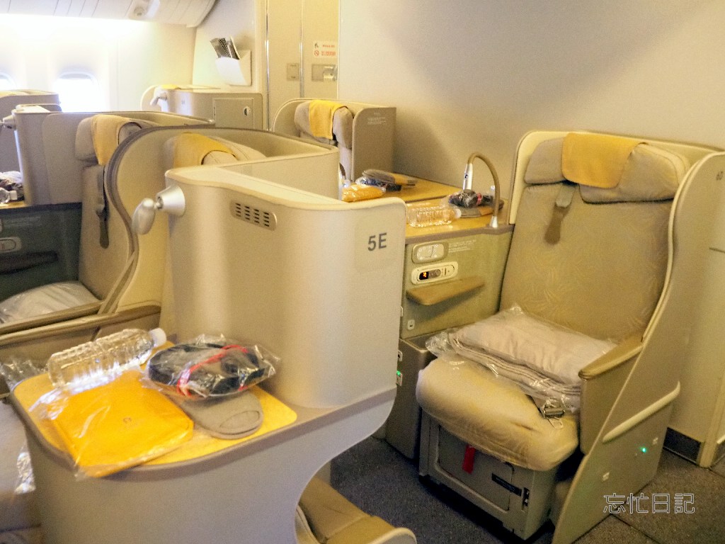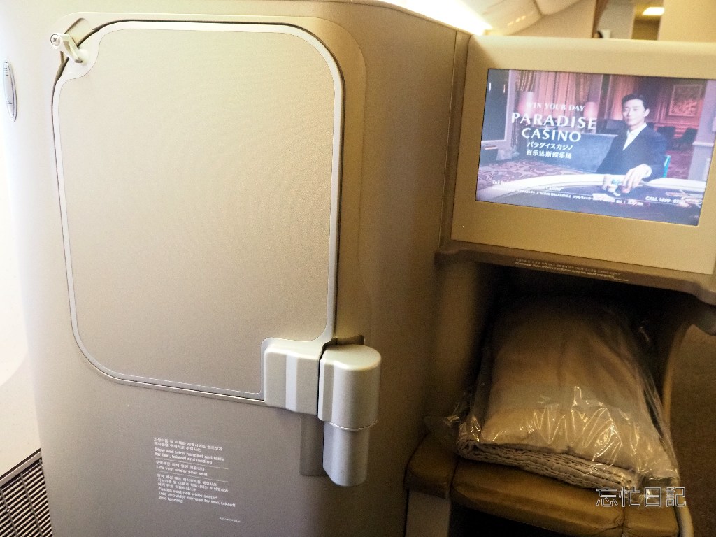 OZ272便の機材は、ボーイング777-200ERでした。ビジネスクラスの座席は、スタッガードタイプで、