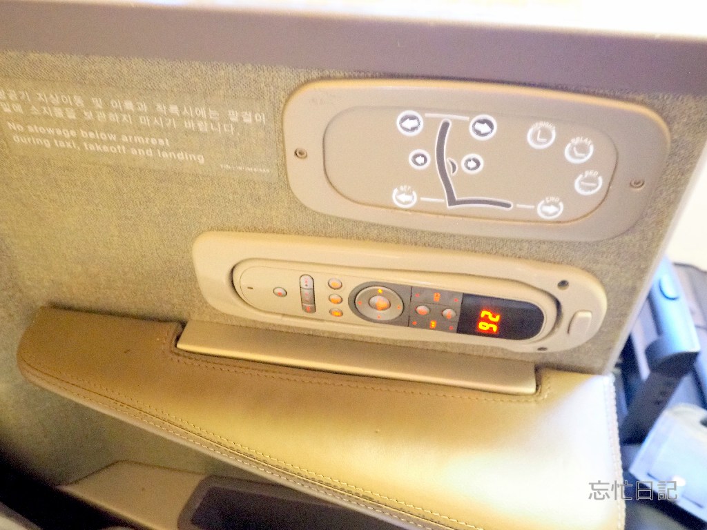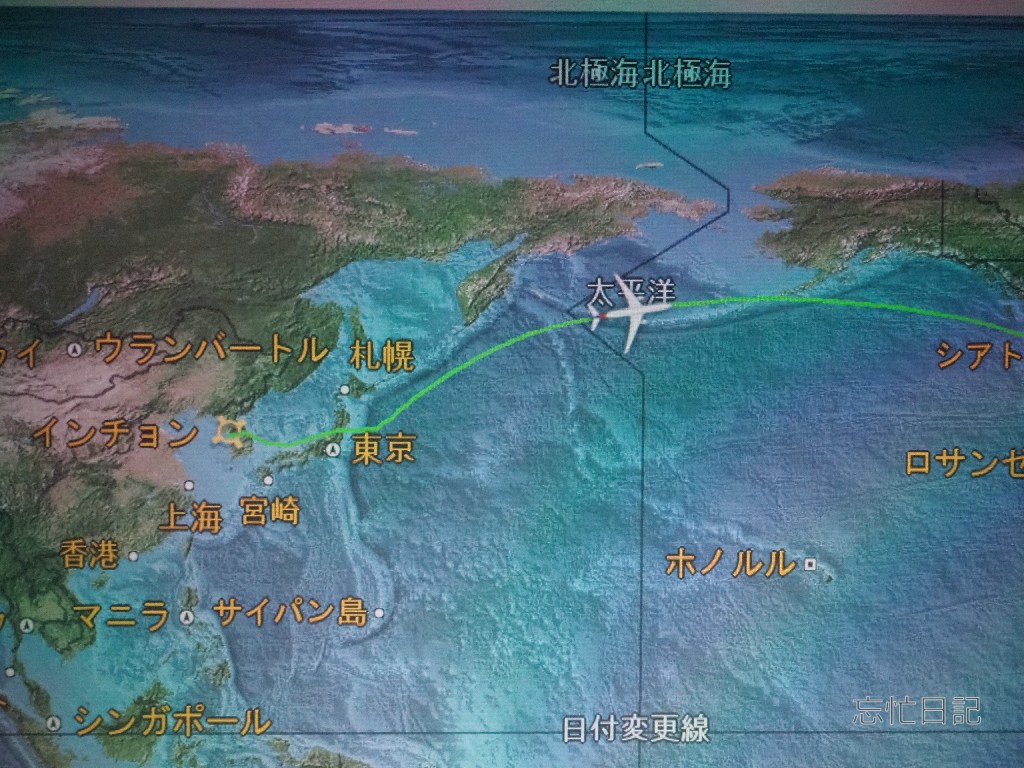 お腹もいっぱいになり、フルフラットにして、ちょっと休むことにしました。OZ272便は、ソウル発18:20でシアトル着が12:45。ディナーのあとはちょうど就寝時間近くなり、よく寝られるので、体に優しい時間帯のフライトです。