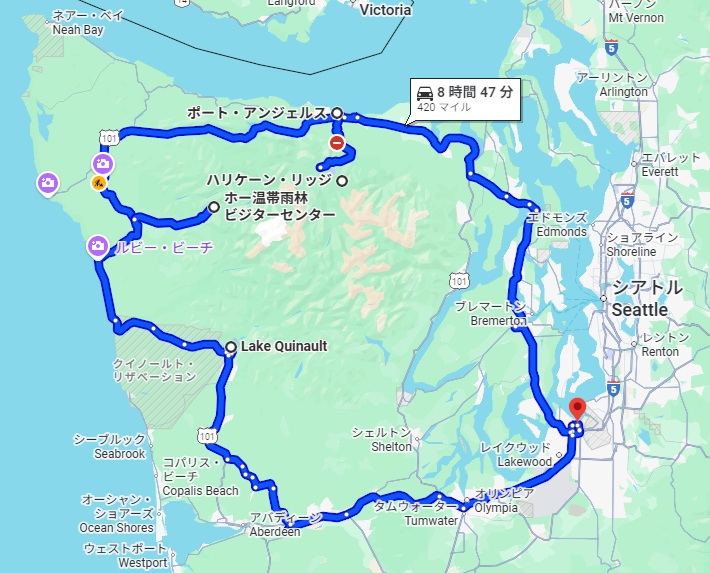 ガイドブックを見ると、「ポートエンゼルスを起点にオリンピック半島を左回りに一周」などど書いてあるものもありますが、