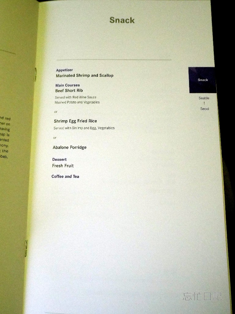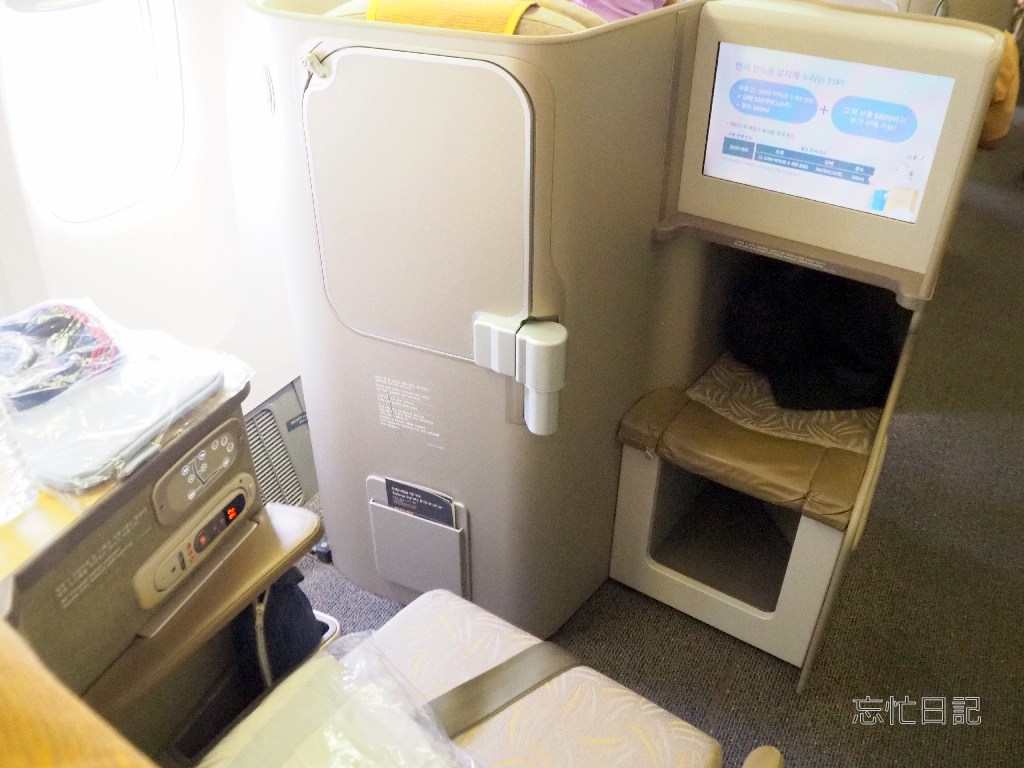 シアトルーソウルの帰路便の機材は往路のソウルーシアトル便で搭乗したのと同じB(ボーイング)777-200ERでした。しかも、座った座席も左側窓際の04Aで同じでした。ということで、シート回りの写真はほぼ同じなので。説明は簡単にします。