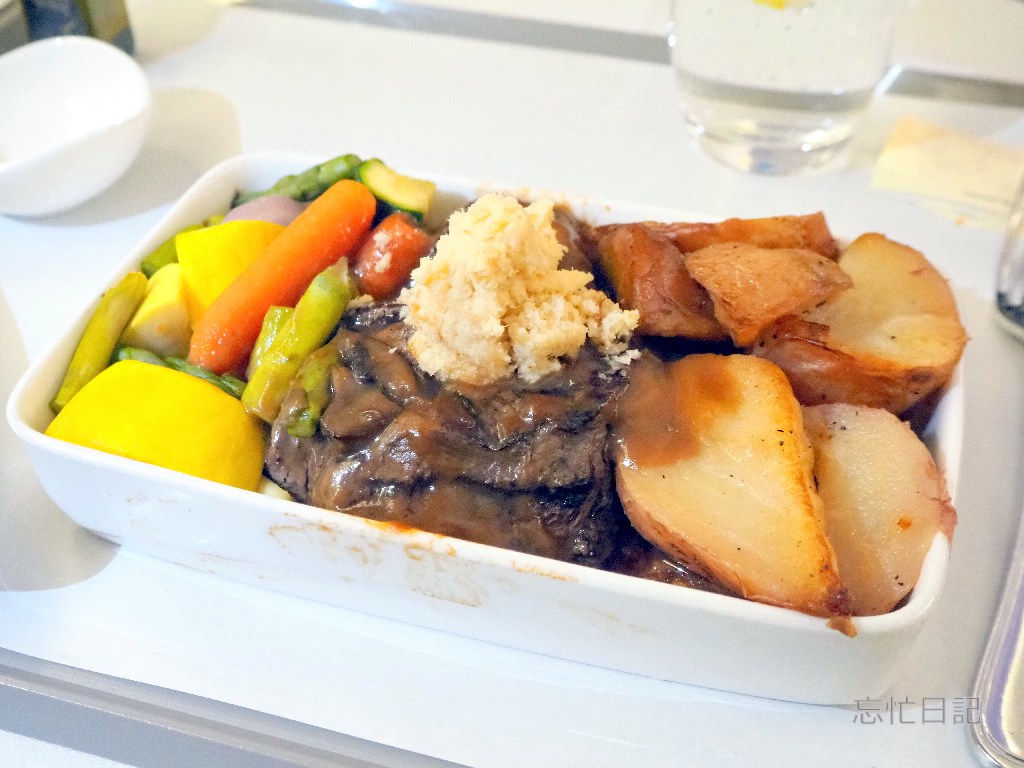 機内食のメインディッシュは牛肉ばかり食べているので、味はさほど違わないので、前菜のほうがバリエーションが豊かで、前菜を味わうのが楽しみだったりします。