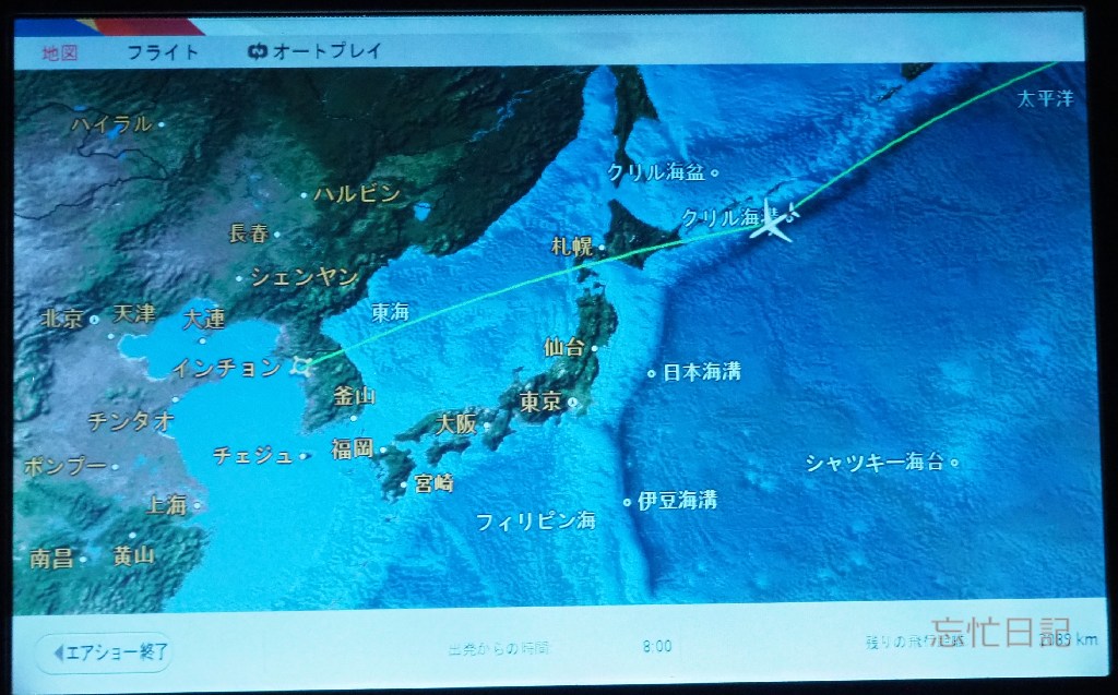 ソウルに着くのは夕方なので、この後は寝てしまうと逆時差ボケになってしまうので、がんばって起きて、このブログなどを書いていました。