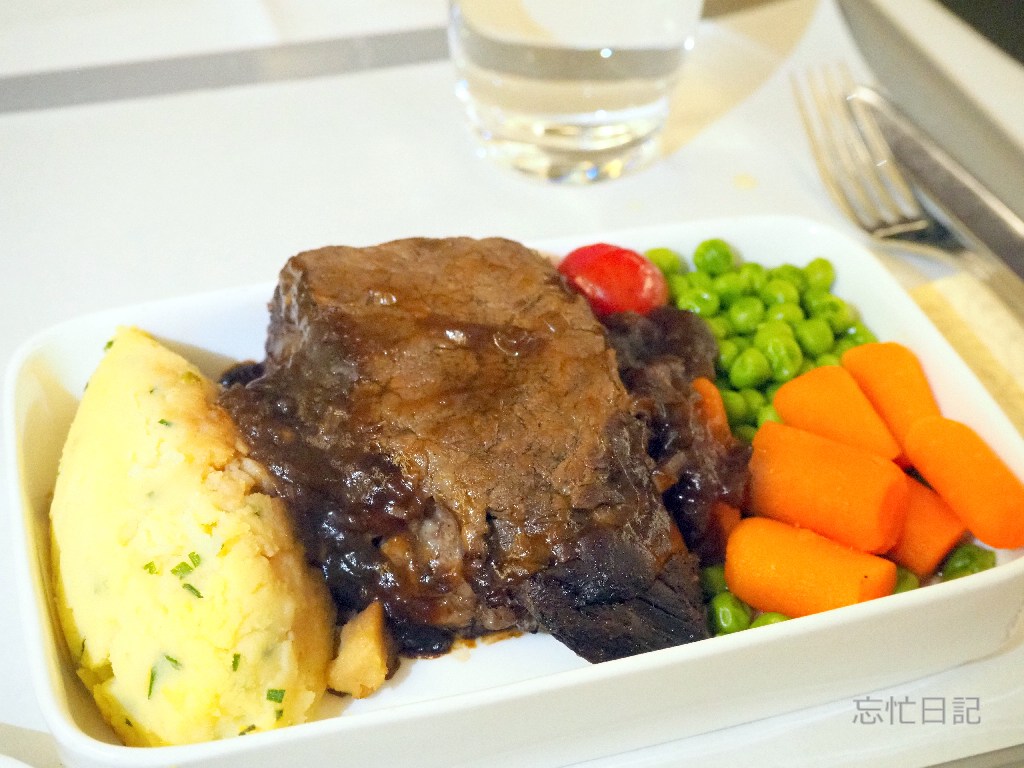往路でお粥を頼んで後悔したので、今度は、牛ショートリブ 赤ワインソースにしました。