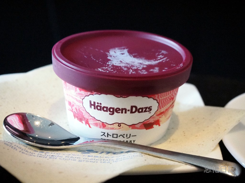 Suite Loungeではハーゲンダッツのアイスクリームの用意があります。この日はバニラ、ストロベリー、クッキークリームの3種が用意されていました。今回はストロベリーにしました。こちらもスタッフにお願いすると席まで持ってきていただけます。もちろん、ダイニングコーナーに行けばセルフでもらってくることもできます。