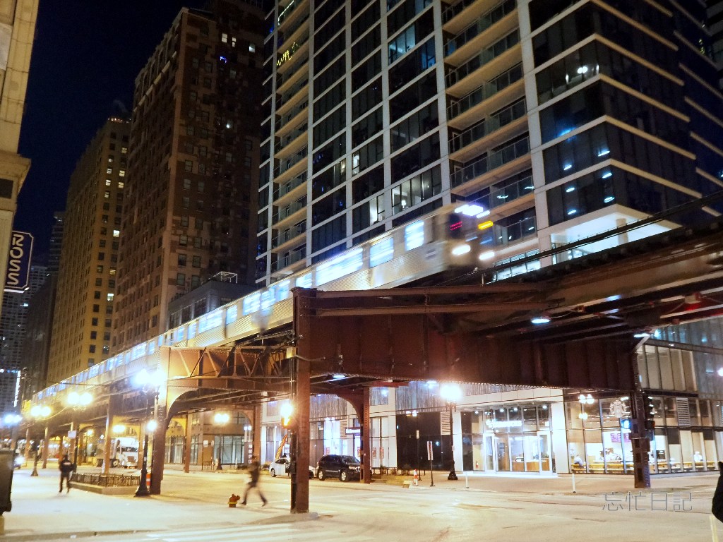 ループの高架を走るCTAトレインは大晦日は終夜運転です。