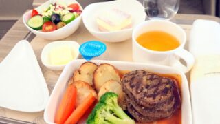 ソウル・仁川からシアトルへ。アシアナ航空OZ272便ビジネスクラスの機内食やワイン、シート設備を詳しく紹介。2025年夏の快適なフライト体験記です。